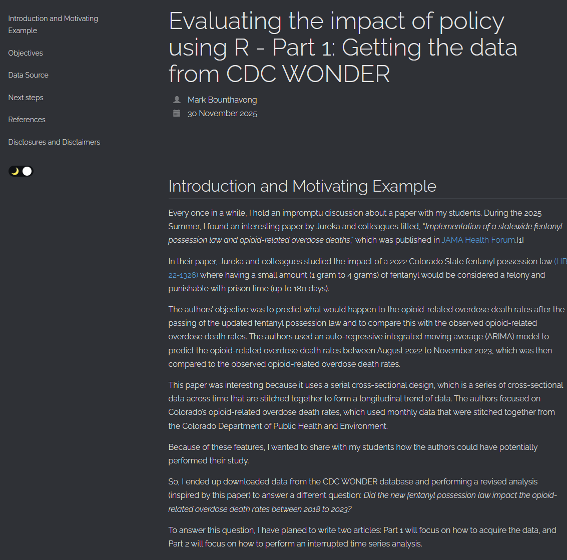 Hence, I wrote an article on how to get death data from CDC WONDER, which I posted on my RPubs site here.